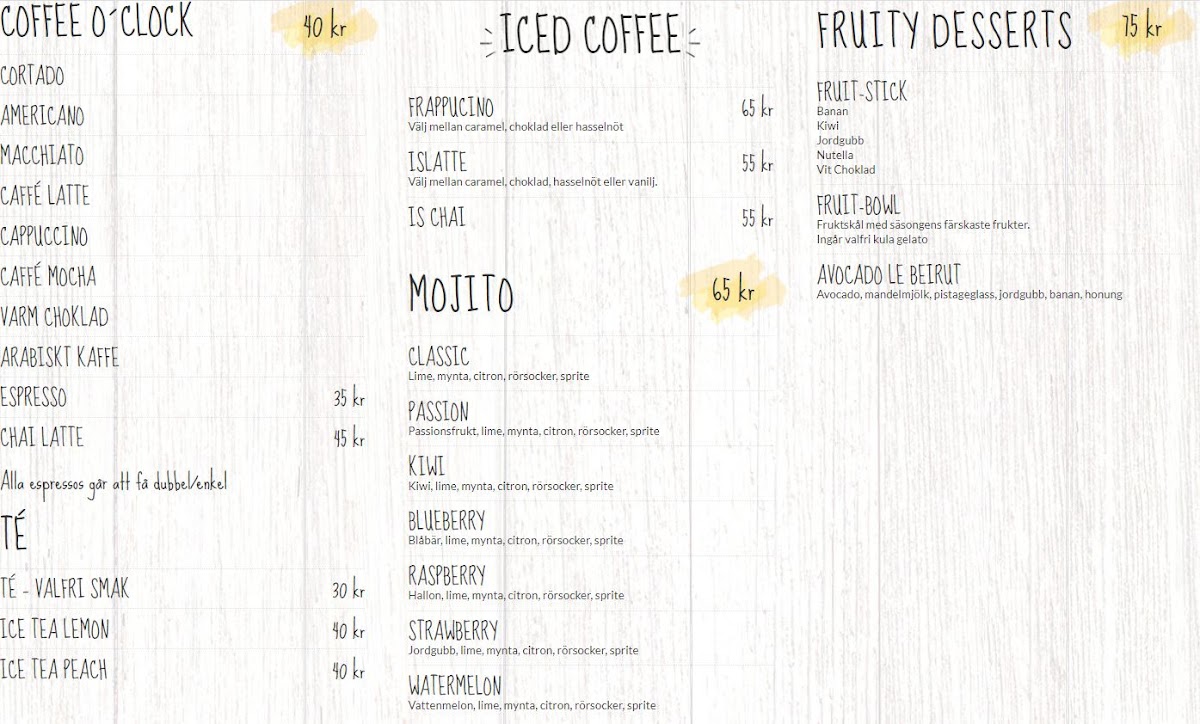 - Mojitos: Choose from an enticing selection of flavors, including classic, passion, and more for just SEK 79.00.